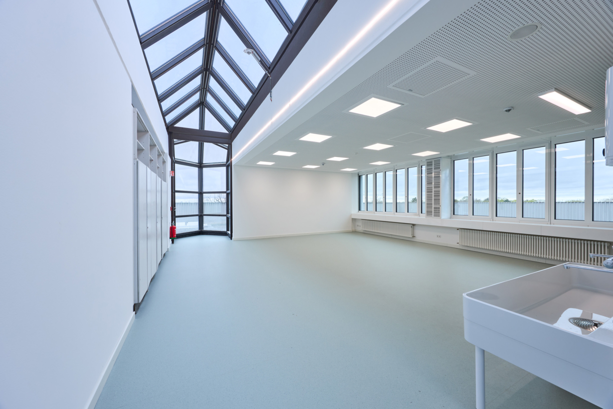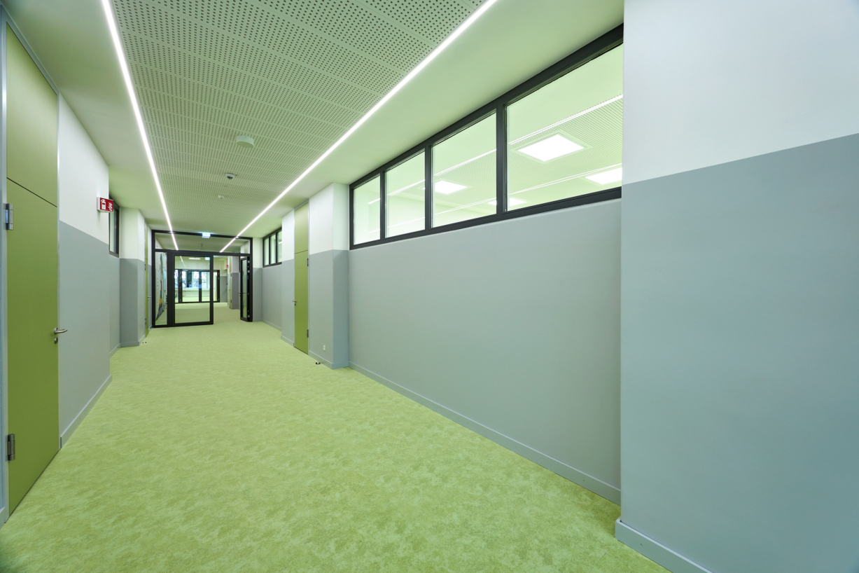 Das Kurpfalzgymnasium im Schulzentrum Schriesheim soll energetisch saniert und durch modernisierte Anlagen in eine zeitgemäße Lernumgebung umgewandelt werden. Neben der energetischen Sanierung der Fassade sollen auch Brandschutztechnische Anpassungen sowie die Sanierung von Böden, Wänden und Decken durchgeführt werden. Die Arbeiten erfolgen in mehreren Bauabschnitten, während die betroffenen Bereiche in einer Modulbauanlage untergebracht werden, um eine vollständige Auslagerung der SchülerInnen zu vermeiden. Jeder Abschnitt wird durch Türen und Trennwände von der Schulnutzung getrennt, was einen sicheren zweiten baulichen Rettungsweg gewährleisteten soll