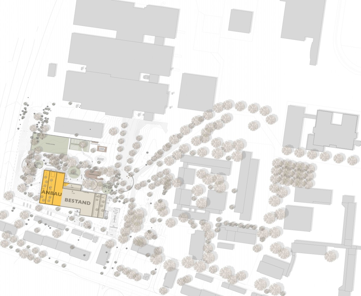 dem Anbau wird Rücksicht auf das bestehende Raster der